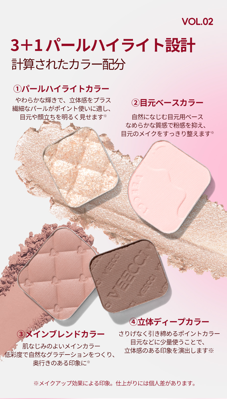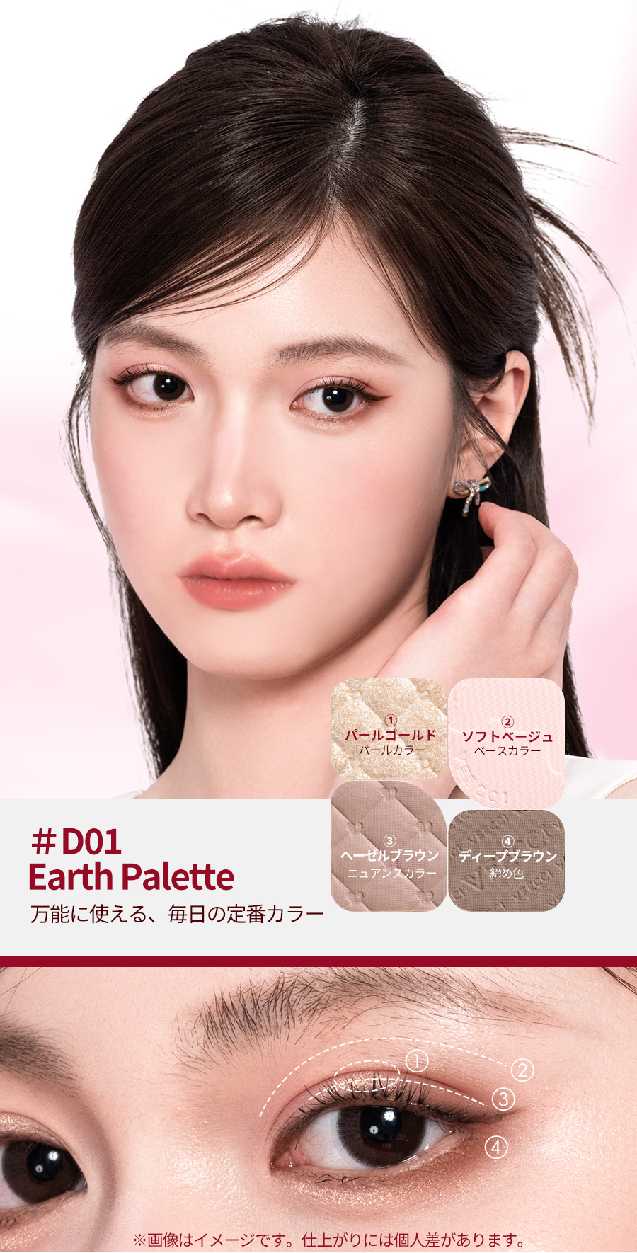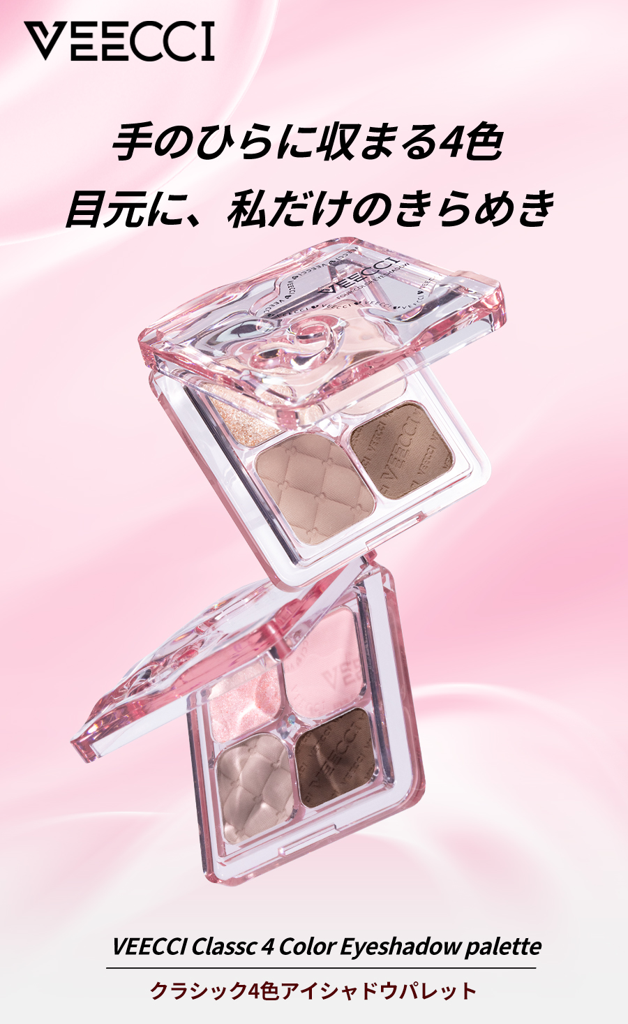 落ち着いたクラシックカラーを組み合わせた、4色アイシャドウパレット。 単色使いはもちろん、重ねてもにごりにくく、自然なグラデーションが簡単に完成します。 肌なじみの良いカラー設計で、目元に上品な陰影と立体感をプラス。 オン・オフ問わず使いやすく、毎日のメイクに取り入れやすい万能パレットです。 ナチュラルからきちんと感のある仕上がりまで、シーンに合わせた表情を楽しめます。