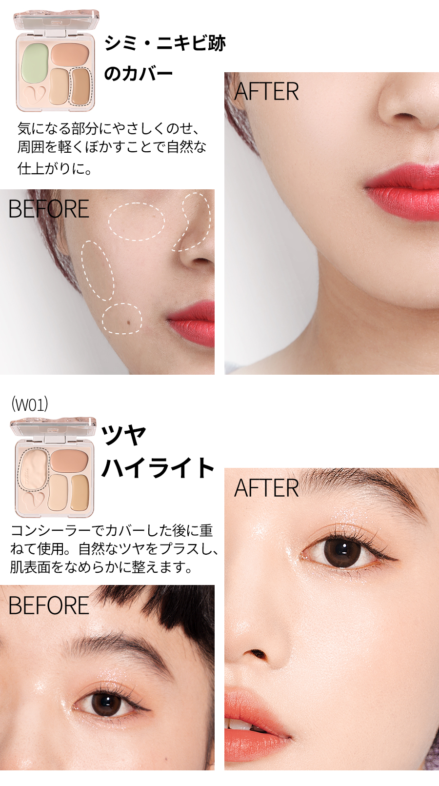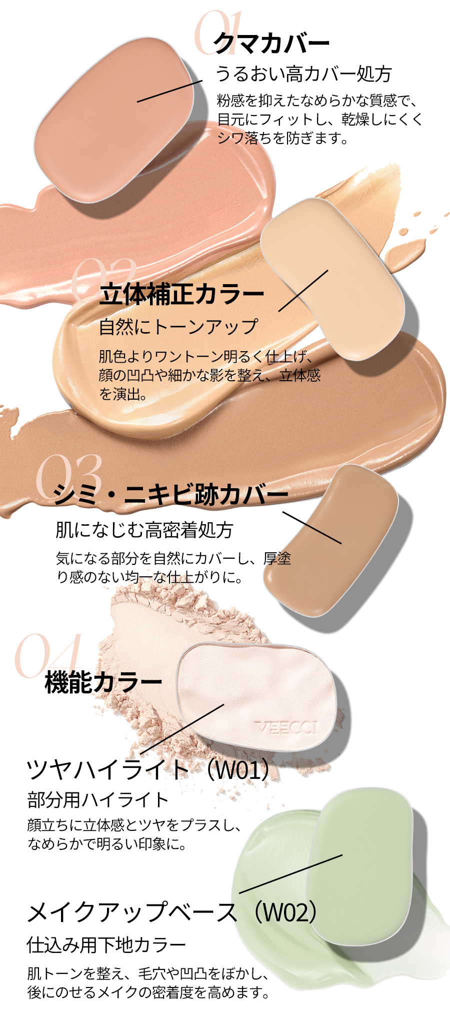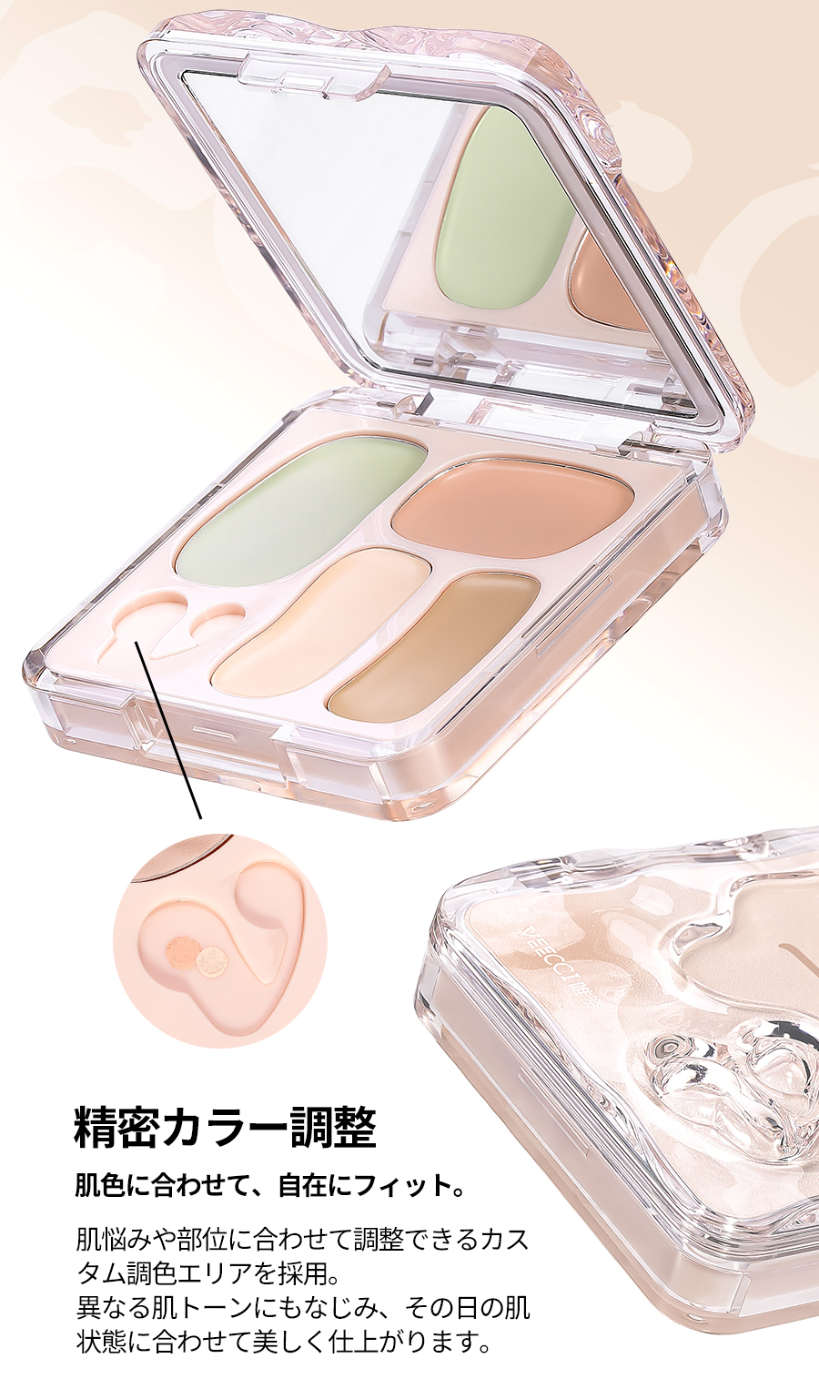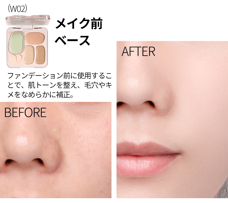 『ひと塗りで、魅せる肌へ』 なりたい肌、叶えるカバー力とナチュラルな仕上がり プロフェッショナルのメイク技 術を自宅で再現できる、万能コ ンシーラーパレットが登場。赤 み、クマ、シミ、くすみ、毛穴 …あらゆる肌悩みをこれ1つで カバー。軽やかなテクスチャー で肌にぴったりフィットし、厚 塗り感ゼロの自然な仕上がりを 実現します。